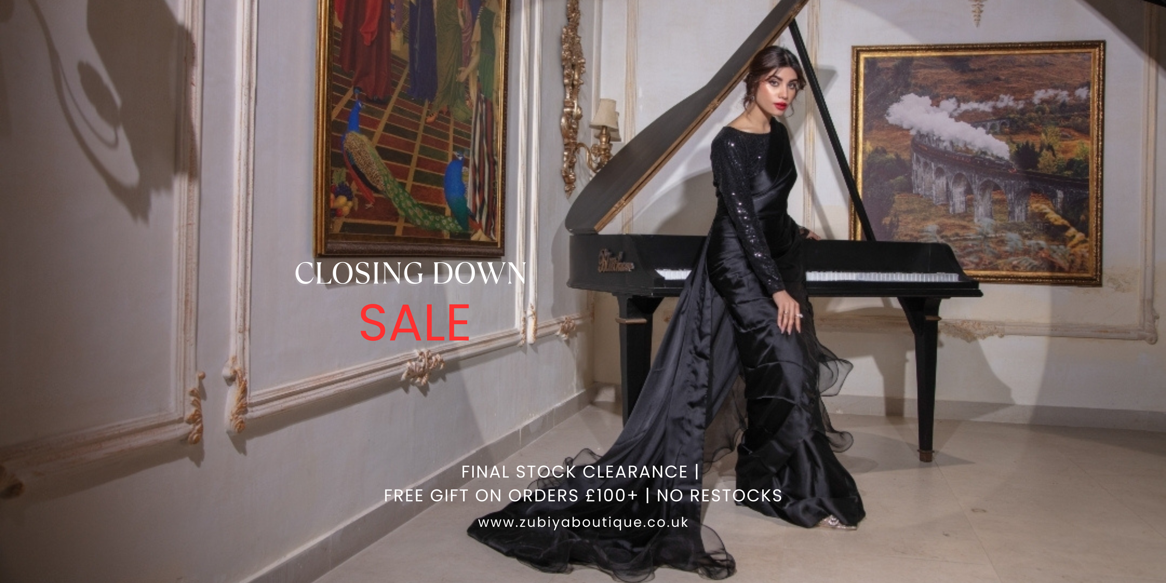With the amazing assortment of Zubiya Boutique, enter a universe of unmatched grace! Discover our sophisticated suits ideal for any occasion that amazingly combine modernism with history.Savish the luxury of our kaftans, which provide easy style and comfort for both formal and informal gatherings.And don't miss our gorgeous sarees, which include minute elements that make you the focus of attention on any occasion. Our unique designs will help you to improve your wardrobe; purchase today to enjoy the finest in fashion!